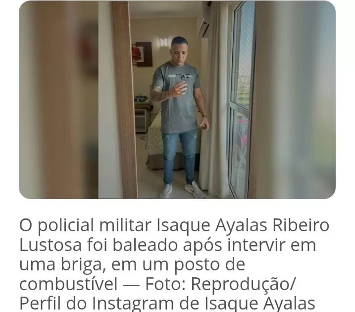 Isaque Ayalas Ribeiro Lustosa foi baleado na cabeça ao reagir a uma discussão seguida de tentativa de homicídio. Ele está em estado grave no Hugol. Policial Militar.