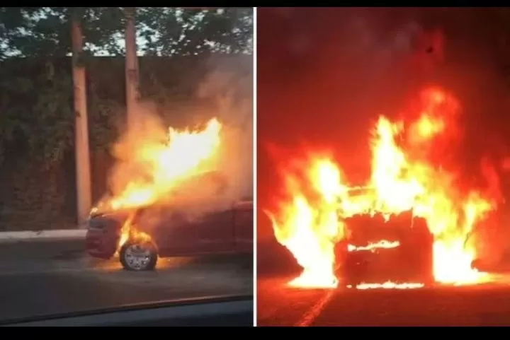 Mãe e criança são resgatadas de carro que pegou fogo em Goiânia