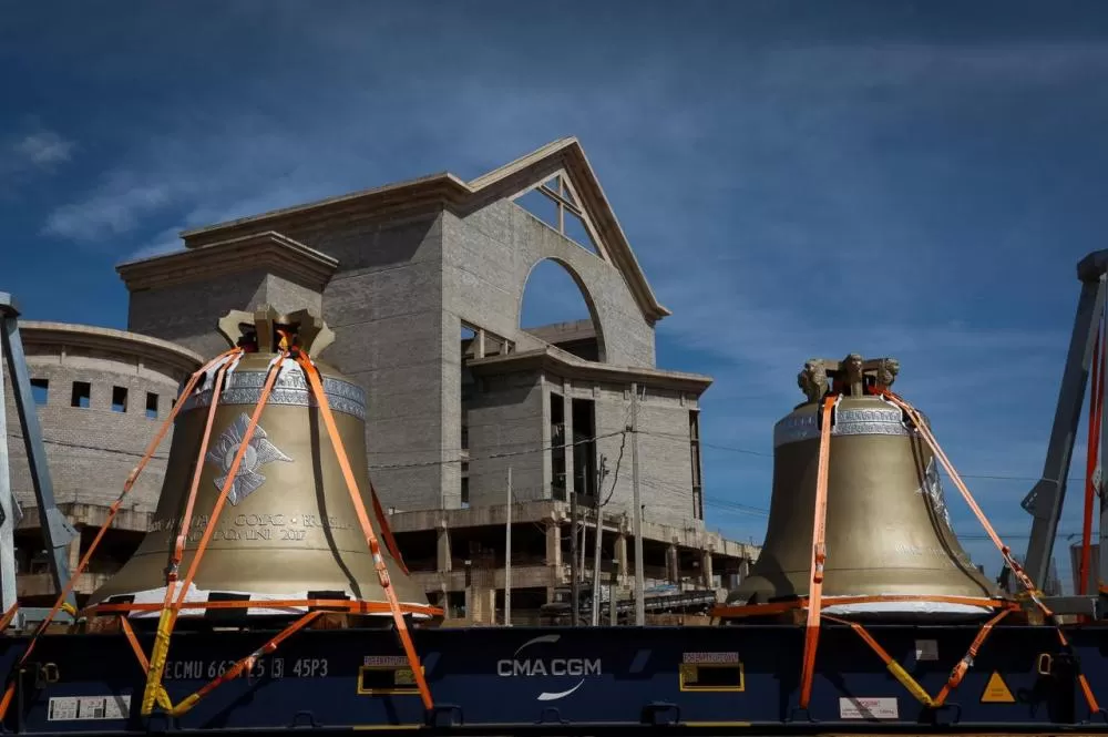 Equipamentos pesam mais de 15 toneladas e integrarão o campanário do novo Santuário do Divino Pai Eterno, ao lado do Vox Patris